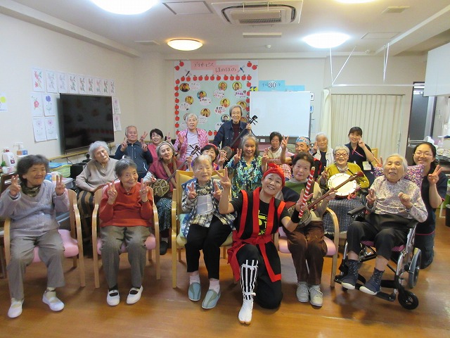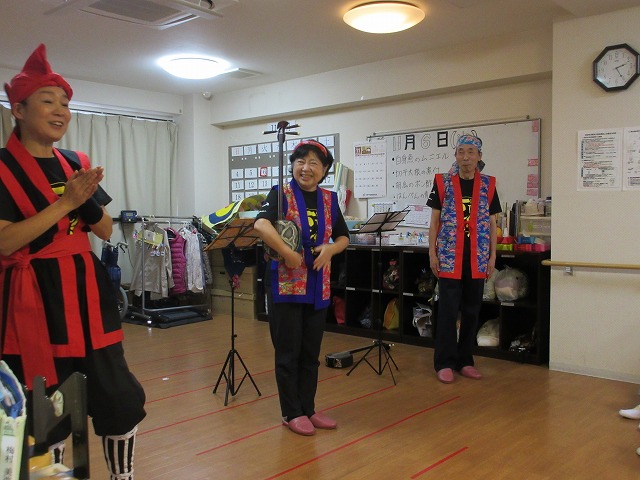 とっても歌がお上手な皆さんで楽しく歌いました。エイサーの一人舞もとても喜んで頂きました。